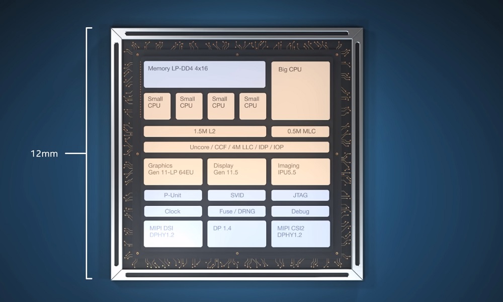 Todos estos elementos se unen en un único chip de apenas 12 mm con el que Intel pone el punto de mira en dispositivos móviles, incluidos los nuevos smartphones plegables, y en portátiles de pequeño tamaño.