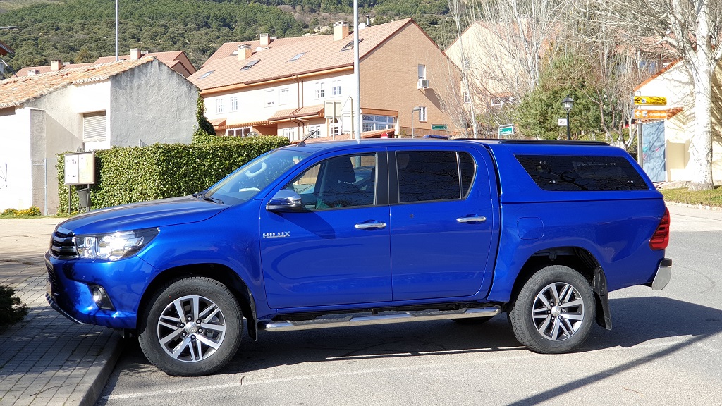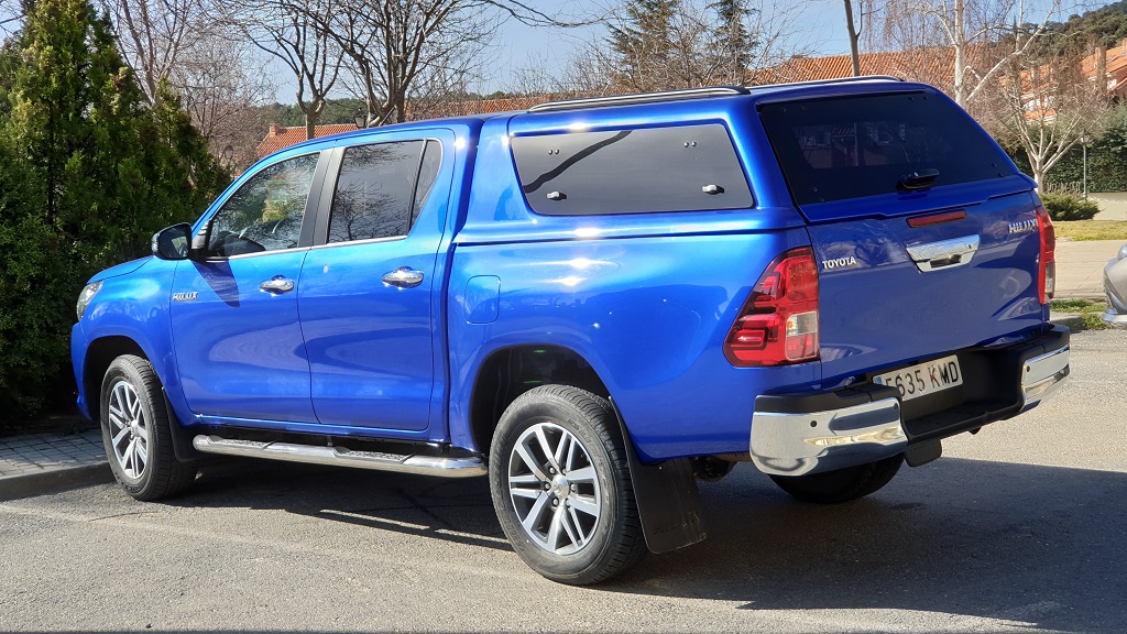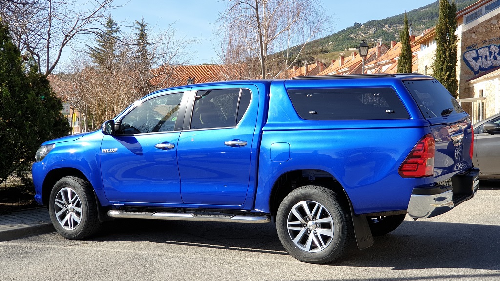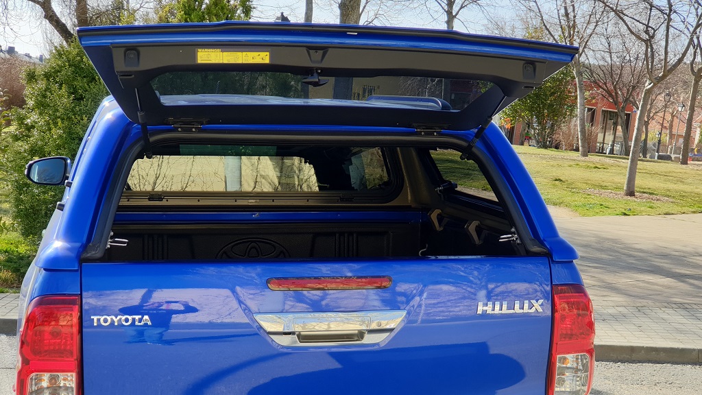 El hard top proporcionado por Toyota para este modelo permite que el Hilux tenga un aspecto menos espartano además de poder utilizarse para cargar objetos para los que no sea conveniente el contacto con la intemperie o que les llueva. Eso sí, el no tener comunicación con la cabina no podremos acceder al contenido de la misma si no paramos el vehículo.