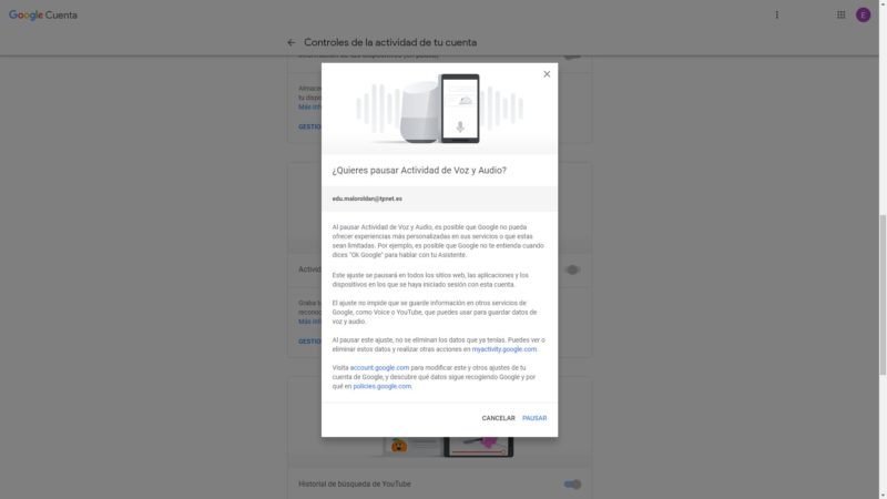 Algo más a tener en cuenta es que cuando pausemos la grabación de estos audios, no estamos deteniendo el resto de actividades, por lo que nuestra página Mi actividad de Google seguirá mostrando y realizando un seguimiento de todas nuestras actividades. La única diferencia, es que ahora este historial no incluirá las grabaciones de nuestra voz.