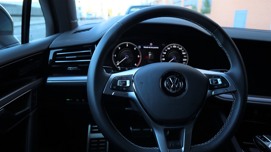 Antes de ponernos al volante para la prueba dinámica del buque insignia de Volkswagen nos gustaría hacer un repaso tecnológico a todo lo que ofrece. La marca alemana ha hecho un grandísimo trabajo de investigación y desarrollo de sistemas activos y pasivos de ayudas a la conducción desde hace ya muchos años. El resultado es lo que encontramos en este Touareg: aparcamiento automático, asistente de cambio de carril, control de crucero adaptativo con radar, control de tracción (ASR, EDL y EDTC), asistente de salida de aparcamiento (trasero y delantero), visión periférica 360º, asistente para atascos y cruces, asistente de luz de carretera (apagando y encendiendo las luces largas pero también controlando su dirección y forma)…
