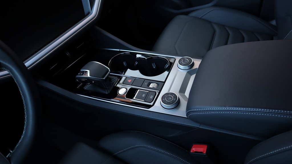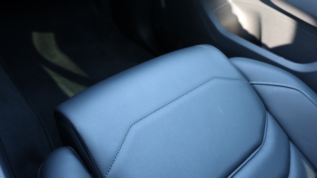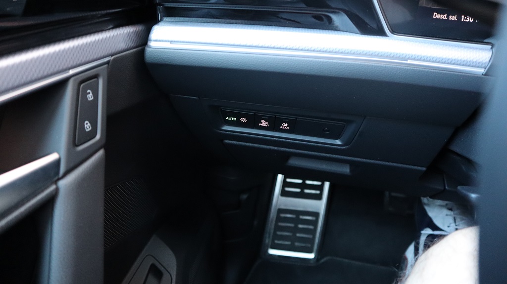 Nos ha parecido especialmente cuidado el aspecto ergonómico, con multitud de ajustes para los asientos y detalles que no se suelen cuidar como zonas de reposo para las muñecas y los brazos para hacer más cómodo el pasar mucho tiempo dentro del coche. Reseñable el apoyabrazos delantero y la zona acolchada justo debajo de la pantalla que en la que apoyar la mano. En la parte inferior del salpicadero, delante de la palanca de cambios se ha dispuesto una zona para colocar el teléfono móvil con carga inalámbrica. Aunque tiene una forma irregular tiene el tamaño suficiente para prácticamente cualquier SmartPhone (cosa que no es tan común).