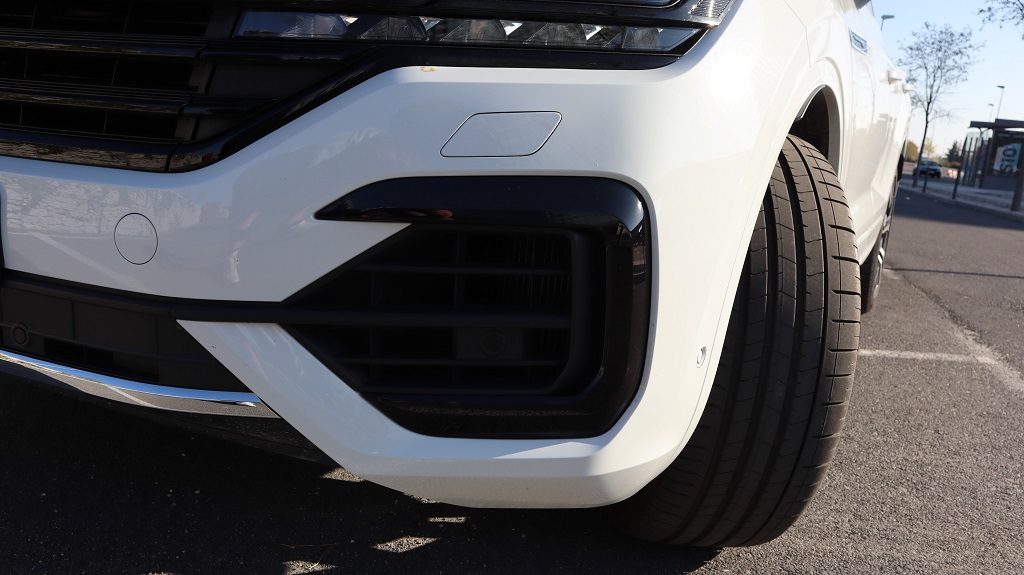 Echando un vistazo al exterior el viaje estilístico del Volkswagen Touareg transita actualmente por un aspecto mucho más futurista que la generación anterior. Con esto este modelo ha perdido un poco ese aspecto todoterreno que aún conservaba para alinearse con la imagen de SUV moderno para competir con modelos más urbanos y ruteros, aunque como veremos más adelante supera a muchos de ellos en cuanto a capacidades todoterreno. Uno de los elementos que más llaman la atención es el morro, en el que parece no distinguirse la parrilla de ventilación de la zona de los grupos ópticos ya que toda la parte frontal está recorrida por barras horizontales.