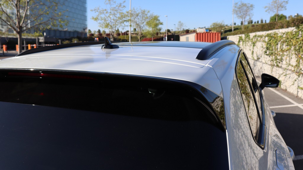 Todo queda soportado por un parachoques en el color de la carroceria que lo arropa en la parte inferior y que limita la toma de aire inferior y las luces antinieblas en cuyo hueco también está cubierta por las susodichas barras. En el caso de nuestro modelo estas barras son de color fibra de carbono y le dan un aire agresivo y deportivo, subrayado por el contraste del color blanco de la carrocería. La línea sigue un trabajado compromiso entre un medio camino entre SUV y todoterreno y el esfuerzo por dar un trazo deportivo al conjunto, que se traduce la caída del techo hasta el spoiler trasero y la forma en la que combinan las ventanillas, las traseras oscurecidas en nuestro caso.