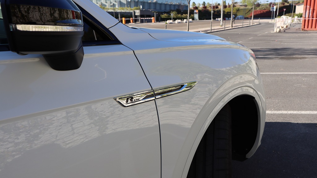 Es casi como si se hubiera montado la parte de abajo e la carrocería de un todoterreno, sobria y musculosa, y a partir de las ventanillas se hubiera insertado la forma de un coche deportivo. Una mezcla que resulta interesante y que le da mucha personalidad a este Touareg. También encontramos un sello particular en las formas de la parte trasera. Los grupos ópticos están colocados altos y se dividen en dos al abrir el amplio portón para acceder al maletero. Dispone de dos salidas de escape con aspecto deportivo (ambas funcionales) y una franja reflectora en color rojo que subraya el caracter deportivo de la zaga. El parachoques es de tamaño generoso para no olvidar el toque todoterreno o SUV con empaque que encontramos en muchos detalles del Touareg.
