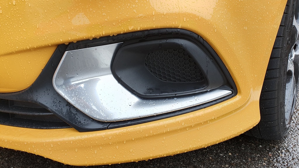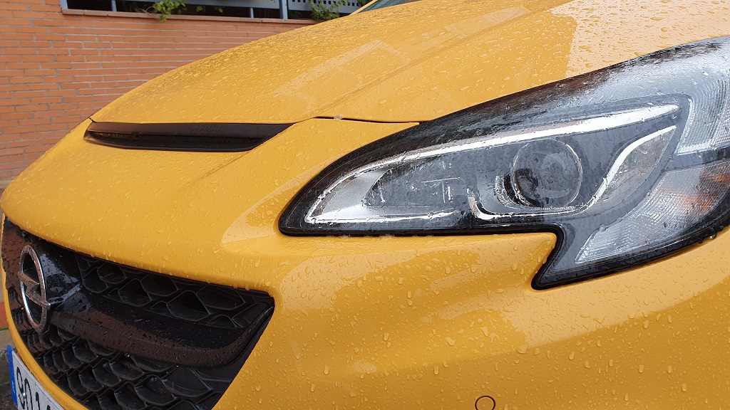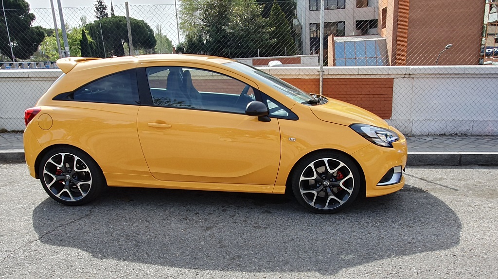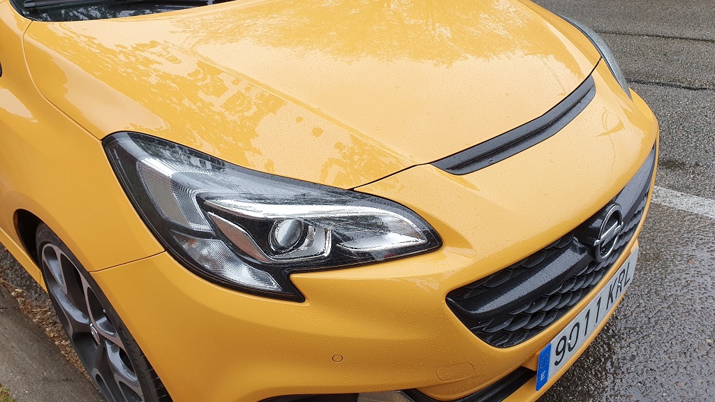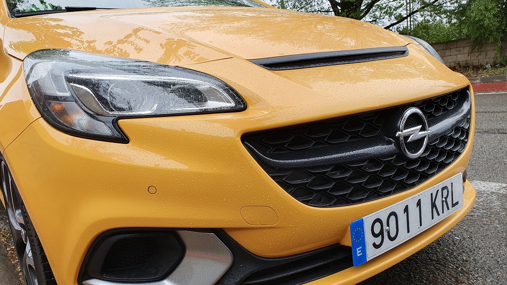 Una de las características principales de los miembros de esta selecta familia con abultado pedigrí es el de no pasar desapercibido y el Corsa GSI que hemos tenido la ocasión de probar cumple perfectamente con este requisito. El color amarillo intenso llama la atención de por si, pero hay muchos elementos que hacen que no apartemos la mirada. El frontal luce una toma de aire adicional en el capó (apostaríamos que no funcional), rejilla del radiador en red denido de abeja, embellecedores en color metálico para las luces antiniebla y faldón / spoiler delantero.