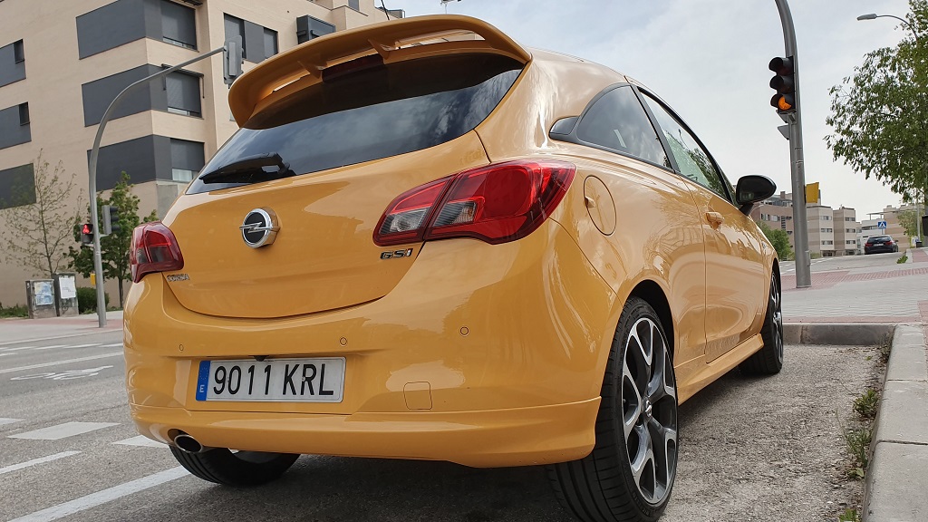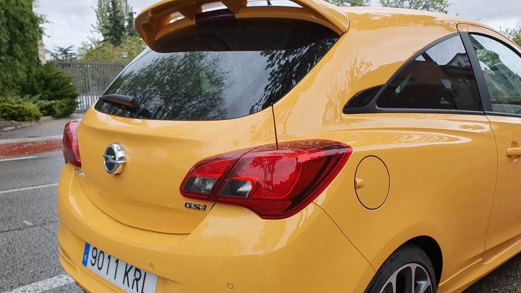En la parte trasera lo que más sobresale es el gran spoiler en la parte de arriba del portón que sube con el mismo cuando lo abrimos para acceder al interior. Redondean el diseño de este Corsa las pinzas de color rojo. En realidad se trata de una carrocería idéntica a la del modelo OPC que pudimos probar pero con una sola salida de escape, quizás para transmitir que el GSI es una versión más «tranquila» aunque con planteamiento igualmente deportivo. Ahora que el OPC ha salido del catálogo de Opel el GSI se ha quedado como la versión más extrema de este utilitario.