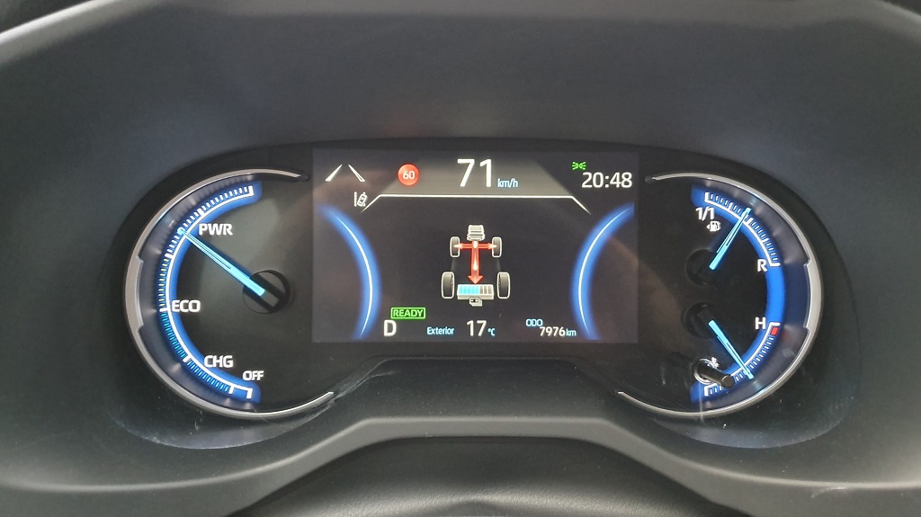 En el apartado de las prestaciones Toyota ha revisado el motor del RAV para proporcionar un aumento de 25 caballos sobre la motorización híbrida anterior, aunque en aceleración sobre el papel apenas ganamos dos décimas de segundo en la aceleración de 0 a 100 kilómetros por hora. El comportamiento en ciudad se asemeja mucho al de la generación anterior, con una suavidad muy grande al arrancar y un funcionamiento realmente silencioso. Además los consumos son contenidos, unos 7 litros a los cien.
