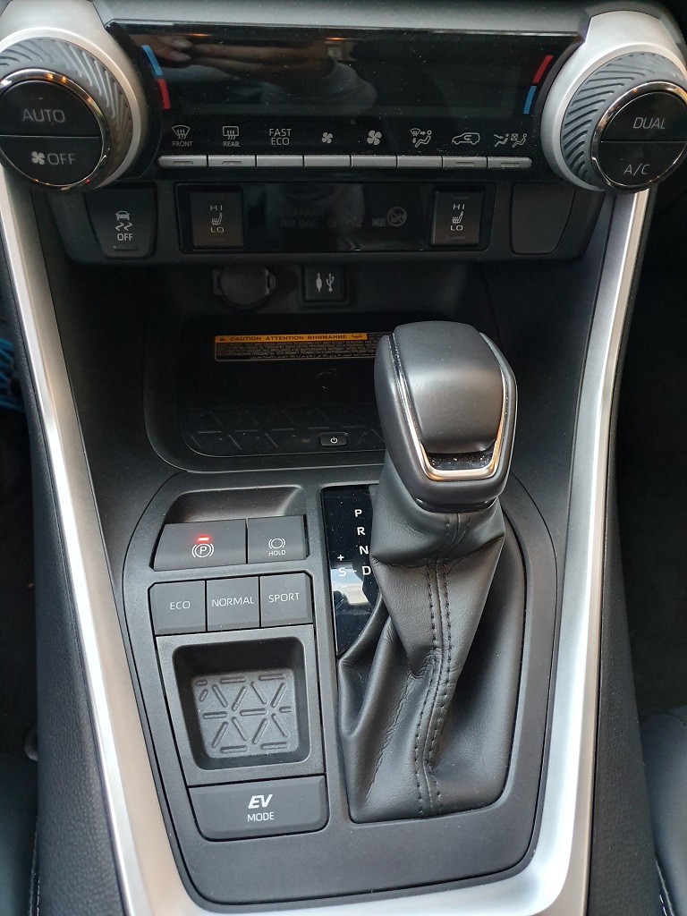 Nos ha gustao mucho el que Toyota haya optado por una palanca de cambios más «elegante» que oculta el recorrido de la misma con el clásico fuelle en imitación de piel. Más elegante aunque perdamos la posibilidad de comprobar de un vistazo la posición de la palanca, aunque podremos comprobarlo en el display frente a nosotros. Bueno el espacio para dejar el móvil delante de la palanca que dispone además de carga inalámbrica.