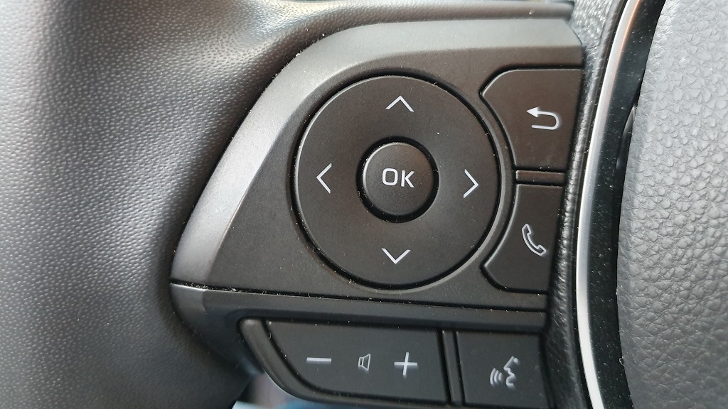 Los acabados sí que nos han parecido de la misma calidad que de la generación anterior, con plásticos blandos que imitan a tejido con sus costuras en lugares a la vista y en los que apoyamos habitualmente las manos o los brazos. En lo que respecta al volante se ha optado en esta ocasión por cambiar los mandos que en esta ocasión no sobresalen tanto como en el RAV anterior.