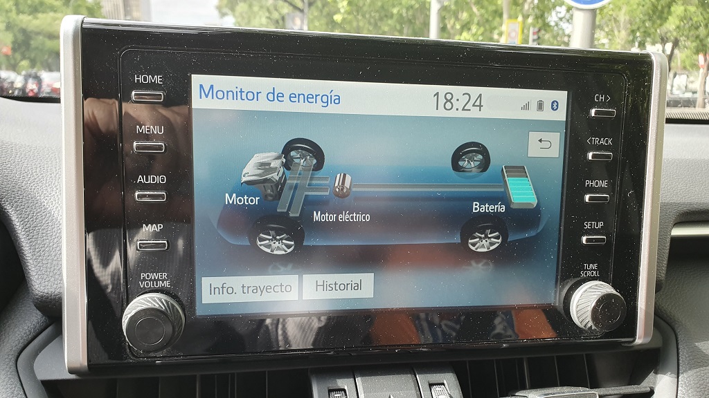 En el apartado de las prestaciones Toyota ha revisado el motor del RAV para proporcionar un aumento de 25 caballos sobre la motorización híbrida anterior, aunque en aceleración sobre el papel apenas ganamos dos décimas de segundo en la aceleración de 0 a 100 kilómetros por hora. El comportamiento en ciudad se asemeja mucho al de la generación anterior, con una suavidad muy grande al arrancar y un funcionamiento realmente silencioso. Además los consumos son contenidos, unos 7 litros a los cien.