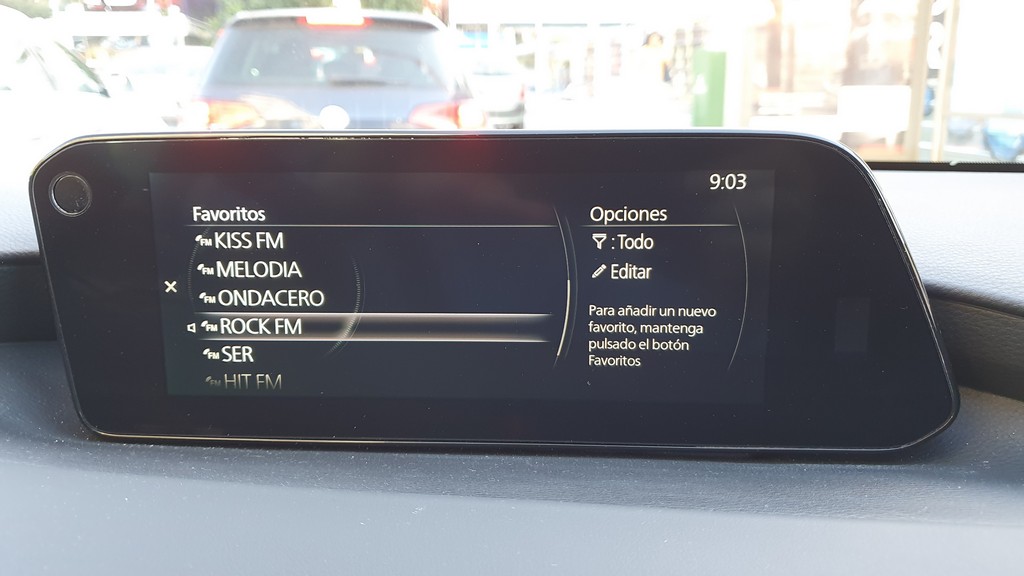 Mazda ha tomado la decisión, como venía haciendo hasta ahora, que ésta no sea táctil para no perturbar la conducción y dispone, también como en modelos anteriores, de un sistema de control con un dial de generoso tamaño y botones de fácil acceso justo tras la palanca de cambios para que no tengamos que mover el brazo para tomar control de las opciones de información y reproducción así como de navegación. El sistema dispone de Android Auto y Apple Car Play.
