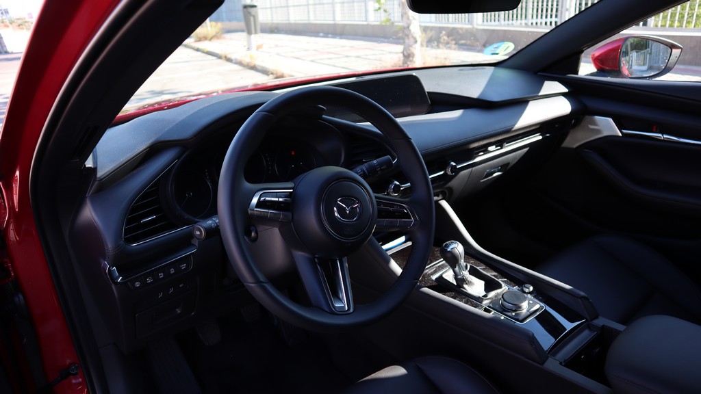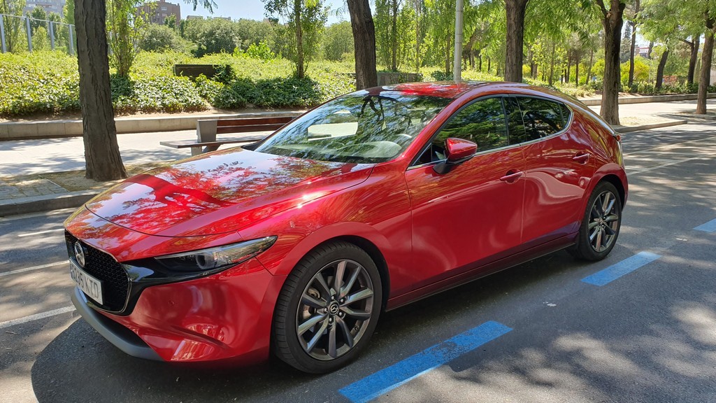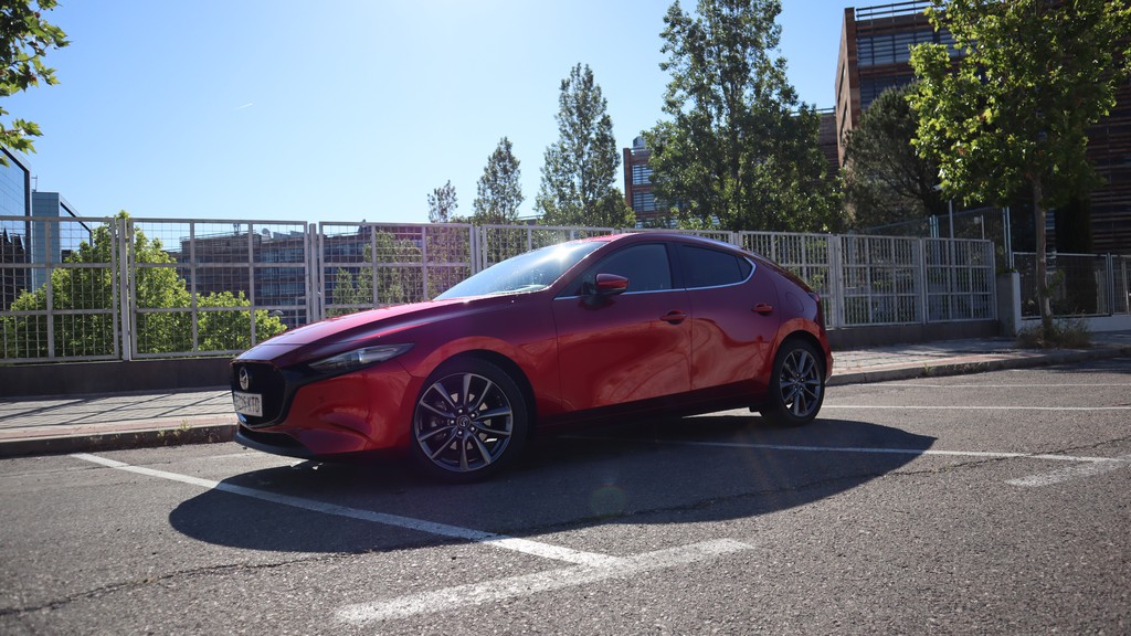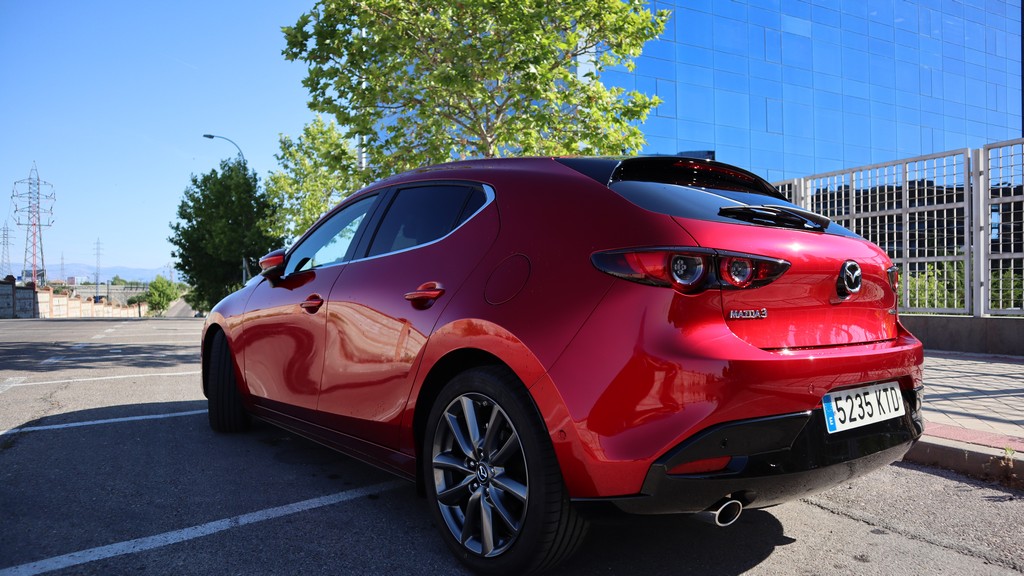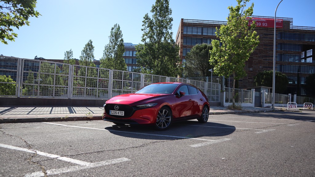 Pero en Mazda también son conductores así que en la prueba de conducción nos dispusimos a comprobar si Mazda no había traicionado su inspiración deportiva introduciendo un sistema de hibridación suave y otros sistemas para reducir las emisiones y contener el consumo. No debimos dudar. Este Mazda3 transmite desde el principio una predisposición increíble a disfrutarlo conduciendo. Un motor progresivo pero firme en sus aceleraciones, un tacto excelente del cambio, unas suspensiones que parecen leer las condiciones de la carretera manteniéndose firmes en curvas cerradas pero absorbiendo las irregularidades.
