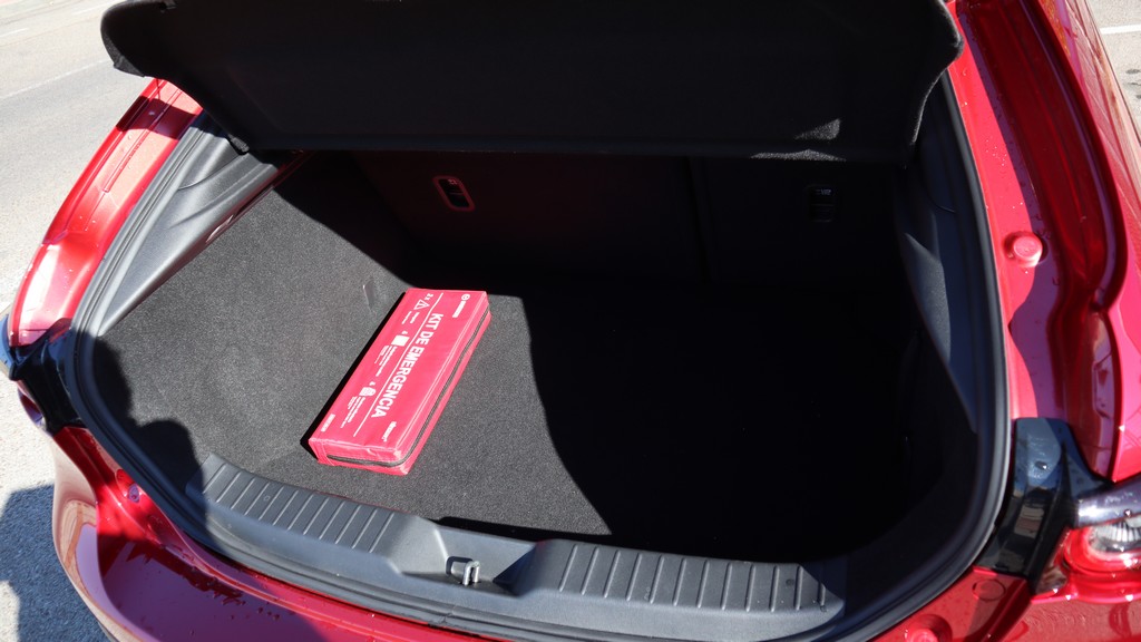 El maletero tiene un buen acceso, a pesar de que el hueco se encuentra a cierta altura, y una luz interior. Sus 358 litros de capacidad le colocan en la media de los turismos de su tamaño y es suficiente para que viajes y compras no requieran soluciones adicionales. Bajo la tapa del piso del maletero encontraremos el kit antipinchazos y, en nuestro caso, el altavoz de graves (responsable de que el «nessun dorma» de Pavarotti sonara vibrante en el habitáculo).