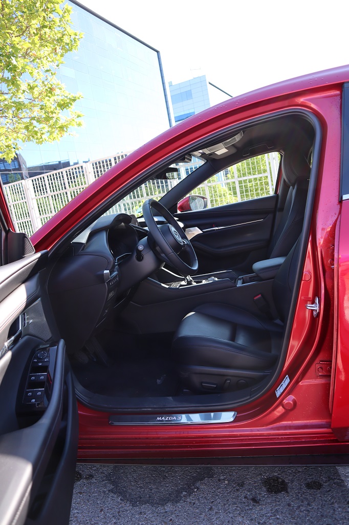 Si por un lado es de admirar la tecnología que han empaquetado los ingenieros de Mazda en sus nuevos motores, no podemos olvidar que, tal y como reza en su página web, también son diseñadores. Y las líneas del Mazda3 que tuvimos en nuestras manos es un fiel reflejo de ello. Al contemplarlo no se puede evitar sentir que se está ante un coche con diseño italiano por lo agresivas y atractivas de sus líneas. Un coche que llama la atención y del que difícilmente nos cansaremos de su diseño. Es uno de esos coches cuya línea resiste el paso de los años.