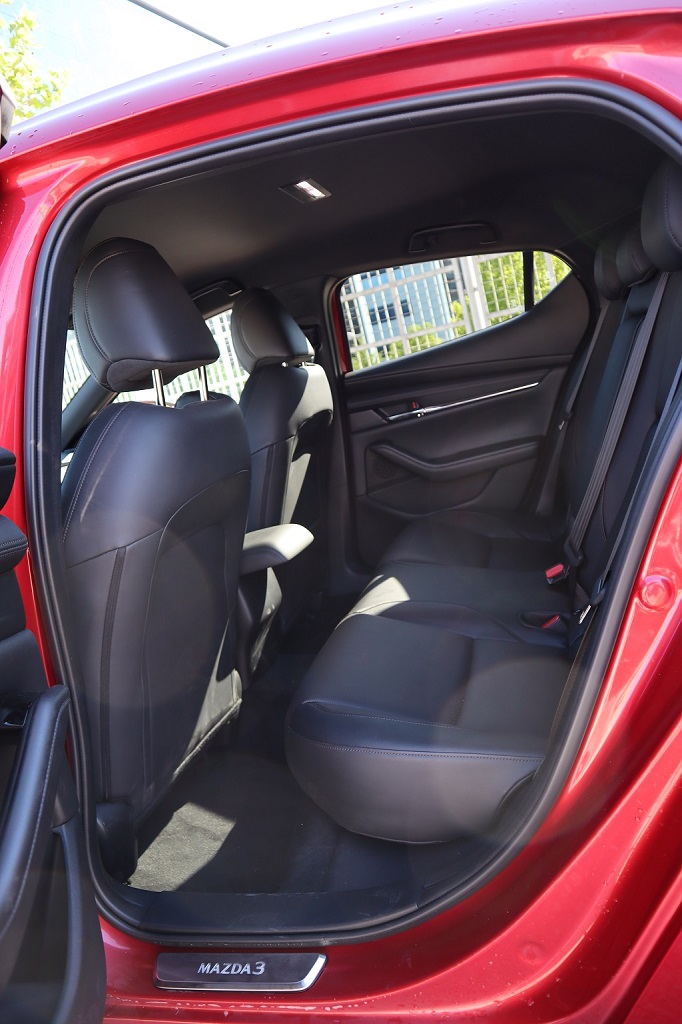 En general el manejo de todas las funciones está a mano y hay atajos y botones para las funciones más utilizadas. Muy sencillos y discretos los mandos de climatización colocados junto al botón de encendido. En el modelo que probamos se instaló la opción de carga inalámbrica en el compartimento junto a la palanca de cambios. Finalmente para este acabado del Mazda3 se incorpora un excelente sistema de sonido Bose que junto a la cuidada insonorización permite disfrutar desde música clásica hasta el rock más ruidoso sin tener que llegar a los límites del amplificador y sin excesivas vibraciones en los paneles.