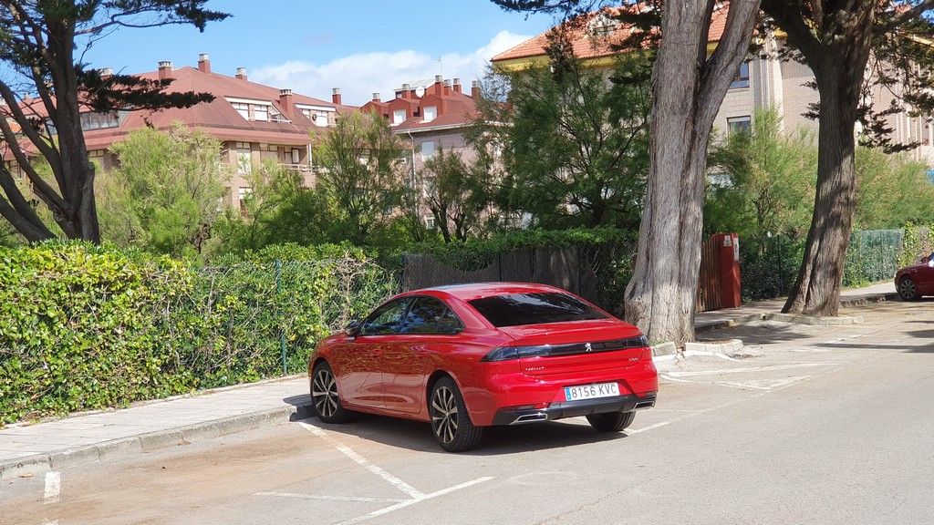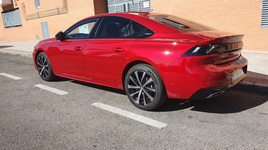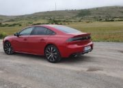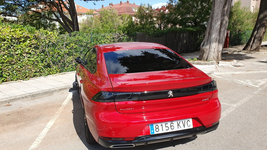 Las líneas del 508 que hemos podido probar hablan claro, se trata de una berlina de diseño marcadamente deportivo. Se ha reducido la altura con respecto a la generación anterior y aunque se ha recortado también algo la longitud nos encontramos frente a un coche grande, de 4,75 metros. Los cambios estéticos también son significativos y subrayan también el carácter dinámico de este modelo, con grupos ópticos más afilados y la impresión de que los cristales recorren los laterales sin obstáculos además del diseño del paragolpes posterior, grande y elevado.