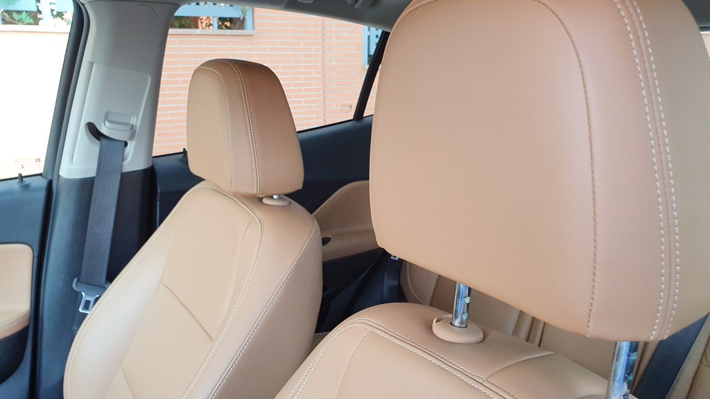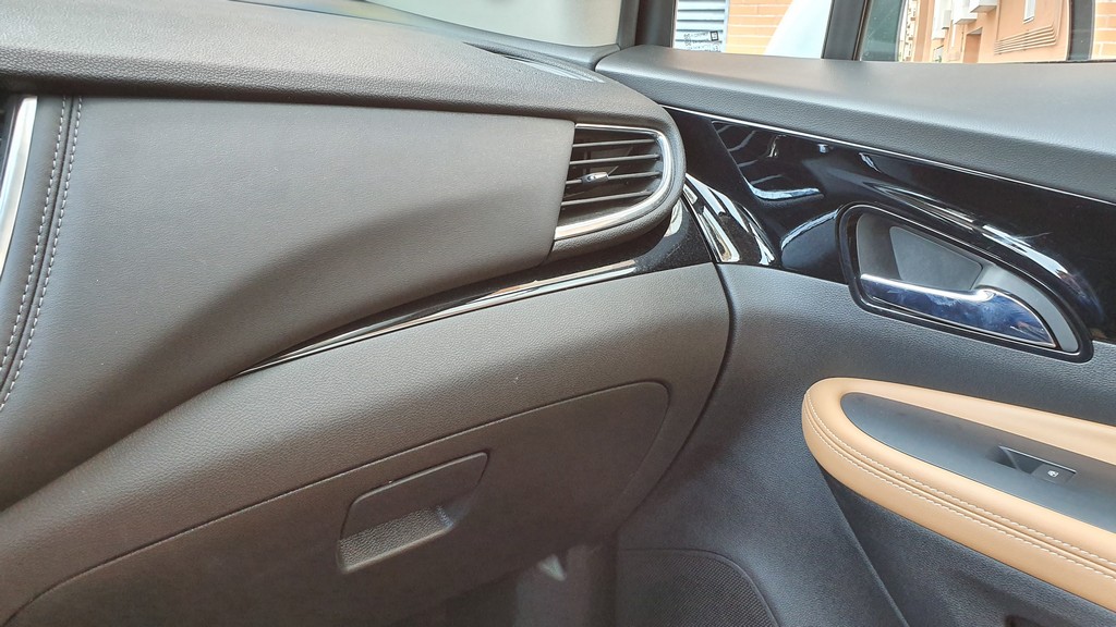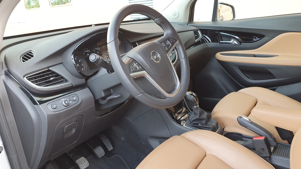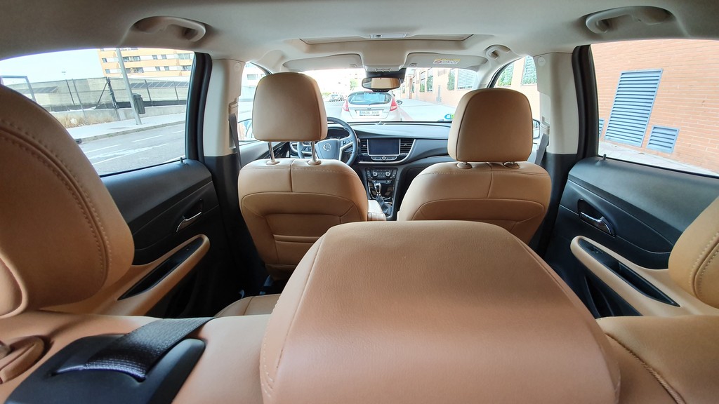En el interior hay más cambios ya que el acabado del modelo que probamos es superior al del test que hicimos anteriormente. Esto nos da la ocasión de analizar un Mokka más «lujoso». Lo cierto es que el cambio es perceptible, sobre todo en lo que respecta a la tapicería en piel de color claro e inserciones en puntos estratégicos del interior con el mismo material como en el interior de las puertas y en los apoyabrazos.