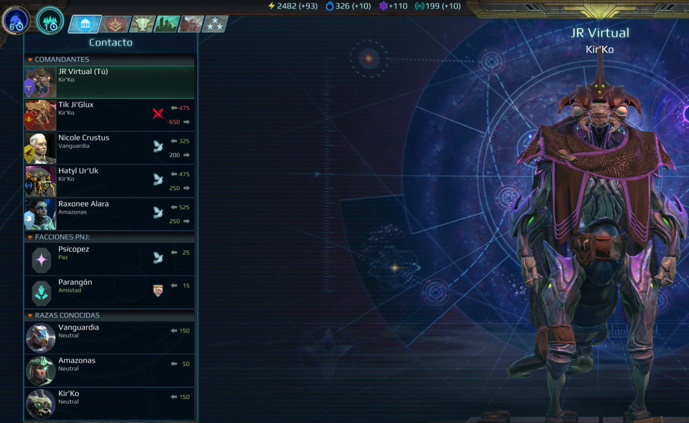 Puedes seleccionar el comandante con el que desees negociar (o los PNJ presentes) en cualquier momento y ofrecer las opciones habituales como los pactos de no agresión, alianzas, apertura de fronteras, conversión en vasallos, recursos o sectores, además de la declaración de guerra correspondiente. Lo mejor que se puede decir de este apartado es que la IA no suele salirse de control como pasa en otros juegos que a las primeras de cambio desde una buena relación te declaran la guerra. Aquí pueden mantenerse las relaciones durante toda una campaña lo que ayuda a conseguir la estrategia fijada.