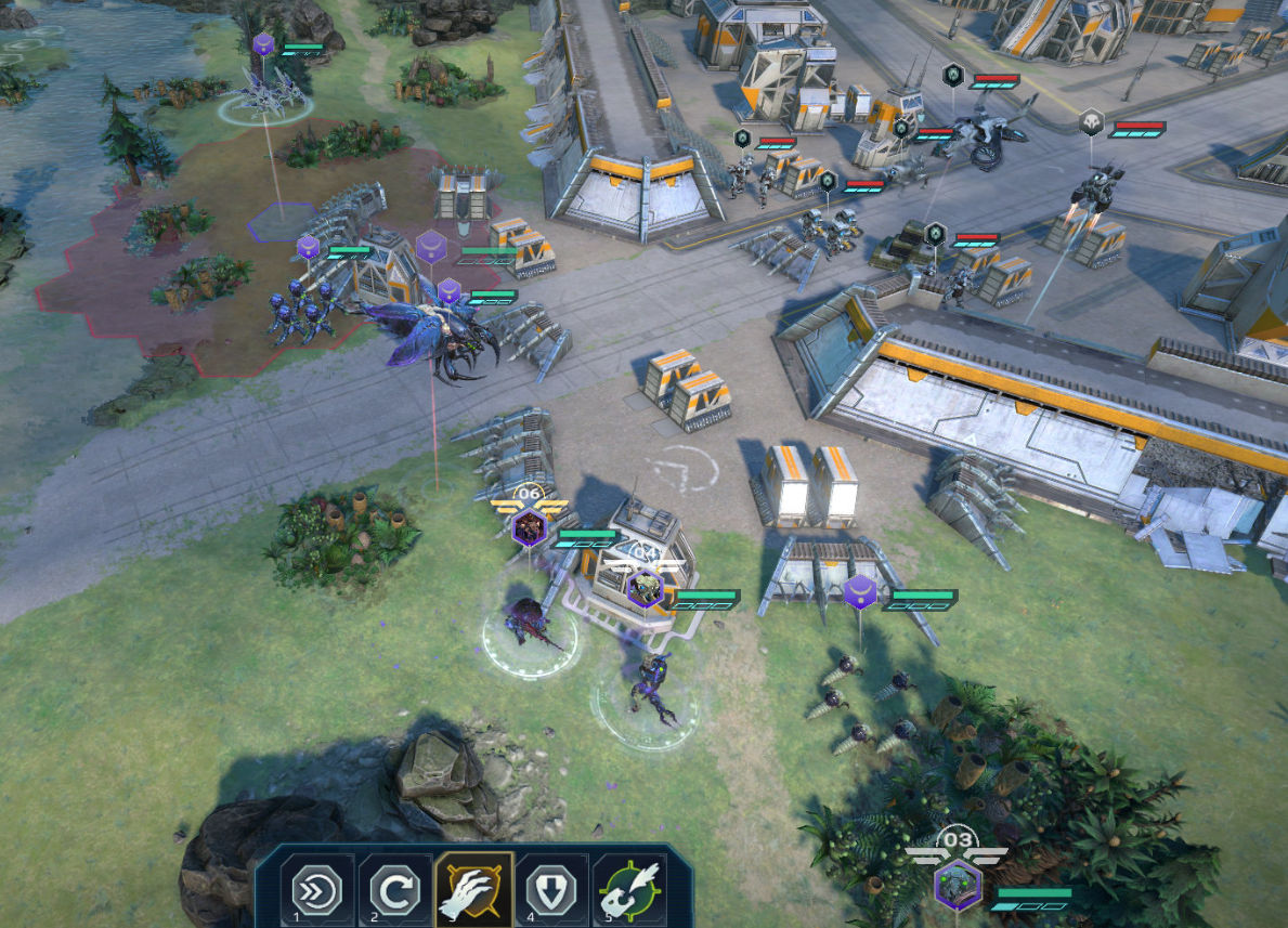 Los ejércitos de Age of Wonders: Planetfall pueden contener hasta seis unidades, ocupan una sola casilla y sirven para explorar, atacar ejércitos enemigos o defender las colonias. Para el combate, puedes unir otros ejércitos de apoyo siempre y cuando estén situados en casillas contiguas. Su diseño y funcionamiento es simplemente genial y uno de los apartados que más no ha gustado del juego. Los diseñadores citaron en el desarrollo a XCOM, palabras mayores porque en combate por turnos es inigualable, pero la verdad es que se acerca a ello en un apartado sobresaliente.