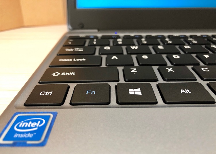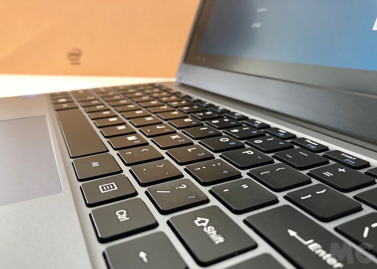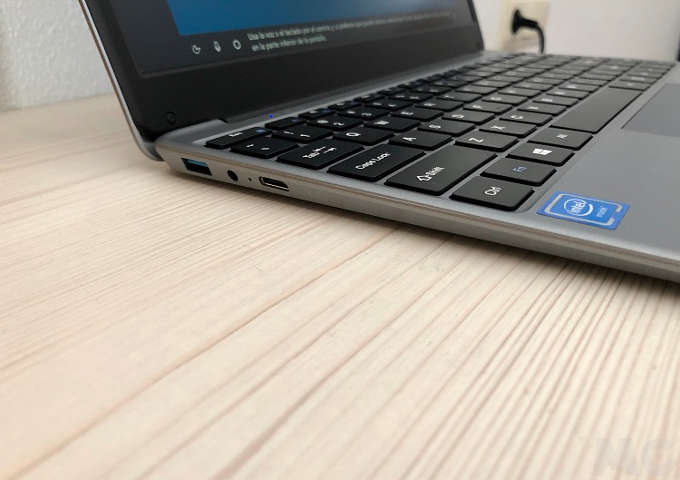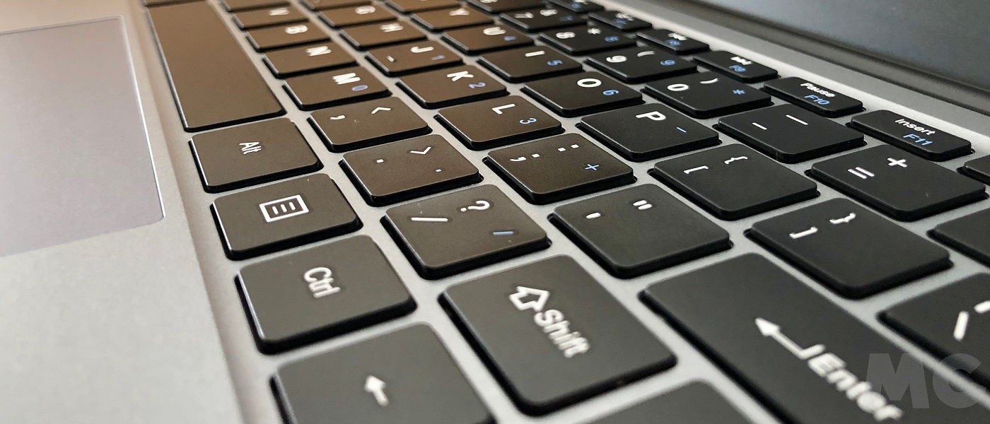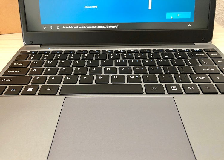 Como anticipamos Chuwi ha utilizado un chasis terminado en plástico, pero el diseño y las líneas del teclado le dan un aspecto bastante llamativo. No luce nada mal para su precio, y el tacto del teclado es mejor de lo que esperaba. Sí, como vemos falta la «Ñ», por desgracia es un clásico en los portátiles de la compañía china, pero la respuesta de las teclas es muy bueno y permite una escritura totalmente fluida. Lo mismo ocurre con la almohadilla táctil, que tiene un tamaño bastante «generoso» y funciona sin problemas tanto en los desplazamientos como en los toques (clics).