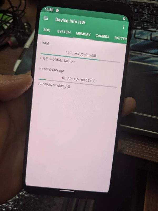 También se han confirmado el uso de 6 GB de memoria RAM LPDDR4X Micron, un almacenamiento interno de aproximadamente 109 GB útiles (acorde con los 128 GB filtrados anteriormente), y una amplia batería de 3.700 mAh.