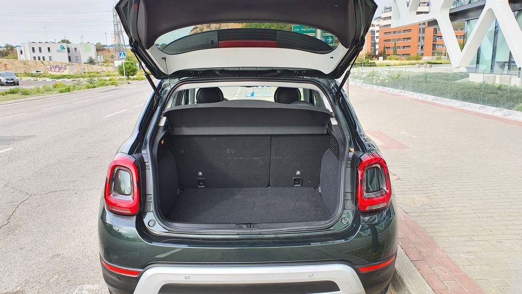 El maletero del 500X es de 350 litros, no precisamente el más grande de la categoría pero sí de los más prácticos y versátiles. Dispone de un fondo que puede disponerse a dos alturas para dividir la carga según nos convenga y podemos abatir los asientos de forma sencilla para lograr un espacio de carga más grande de hasta 1.000 litros.