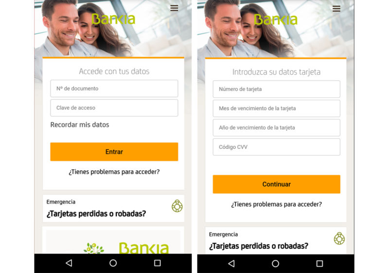De esta manera, cuándo abrimos nuestras aplicaciones de banca, este malware abrirá un proceso en segundo plano para mostrarnos en su lugar una pequeña máscara, totalmente idéntica, con la que robar nuestras credenciales.