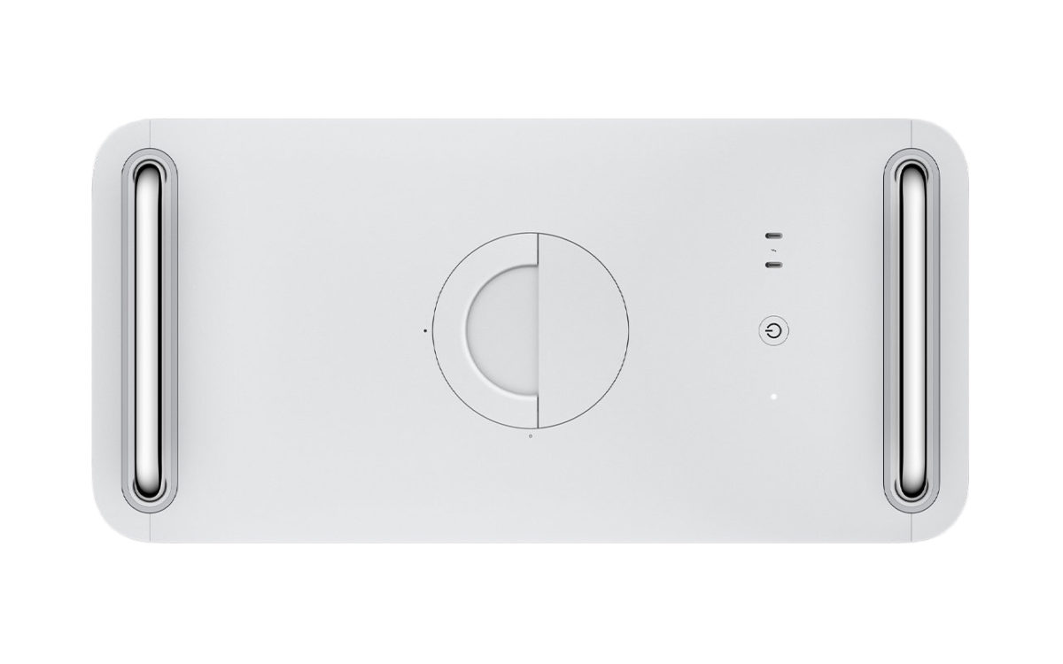 Comenzando por su novedoso y polémico diseño, con una caja simple y de líneas elegantes sólo perturbada por la doble rejilla de ventilación. Así pues, los Mac Pro están fabricados enteramente en acero inoxidable, desde la cubierta y el chasis hasta las dos asas para el transporte, y unas pequeñas patas de apoyo en la parte inferior.