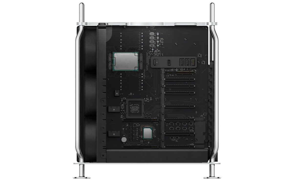 No obstante, la máquina cuenta con opciones de mejora y ampliación, siendo compatible con las Radeon Pro Vega II Duo, capaces de duplicar los valores de una sola tarjeta. Y es que de hecho contaremos con hasta dos módulos disponibles, por lo que los usuarios más avanzados podrían llegar incluso a usar dos Vega II Duos, alcanzando cifras de rendimiento equivalentes a 56 teraflops de potencia gráfica y hasta 128 GB de memoria VRAM dedicada.