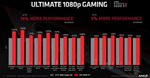 Si os fijáis en las imágenes que acompañamos veréis que gracias a esa particular configuración (en esencia es una RX 5700 con un recorte de bus, memoria y frecuencias) esta nueva tarjeta gráfica es capaz de superar a las GTX 1660 Super y GTX 1660 Ti de una manera clara y, en algunos casos, contundente.