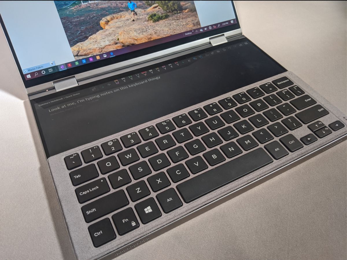 El Dell Duet Concept parece que contará con un teclado físico que se podrá acoplar a una de las dos pantallas, una adición que puede resultar de gran utilidad para aquellos que sean capaces de escribir sin mirar el teclado o de mecanografiar, ya que la mayoría de los portátiles únicamente constituidos por dos pantallas suelen ofrecer solo un teclado táctil, el cual elimina la sensación física de las teclas, haciendo que el usuario no tenga una referencia de a dónde tiene colocados los dedos.