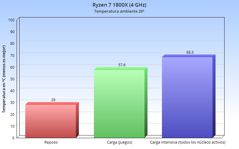 Con el objetivo de ofreceros un análisis más amplio también he utilizado el Corsair A500 en mi equipo personal que, como dije anteriormente, está formado por un procesador Ryzen 7 1800X (socket AM4). Lo tengo overclockeado a 4 GHz desde hace más de dos años y cero problemas. Sin más preámbulos vamos a ver los resultados.