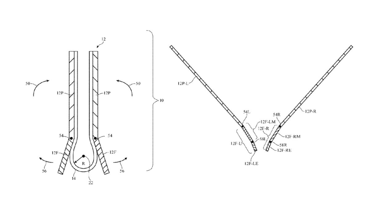 El resumen de Apple de la idea incluida con la documentación de la patente puede llegar a resultar un poco, pero básicamente plantea la inclusión de unas solapas flexibles en las pantallas que podrán extenderse sobre el pliegue, en función de cuándo se abra o cierre el dispositivo.