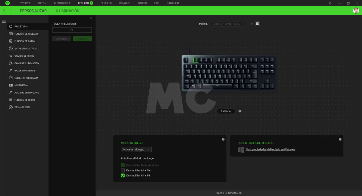 Aunque sí que requeriremos de la instalación del software gratuito Razer Synapse 3 para poder acceder a la configuración completa del mismo, lo cual no permitirá acceder a la configuración y reasignación de las funciones de todas y cada una de las teclas; la edición de macros; la creación de perfiles de usuario (los cuales podremos además almacenar en la memoria interna del propio teclado para cuando lo transportemos); y los efectos de iluminación y sincronización a través de Chroma Studio, la plataforma integrada par el control RGB.