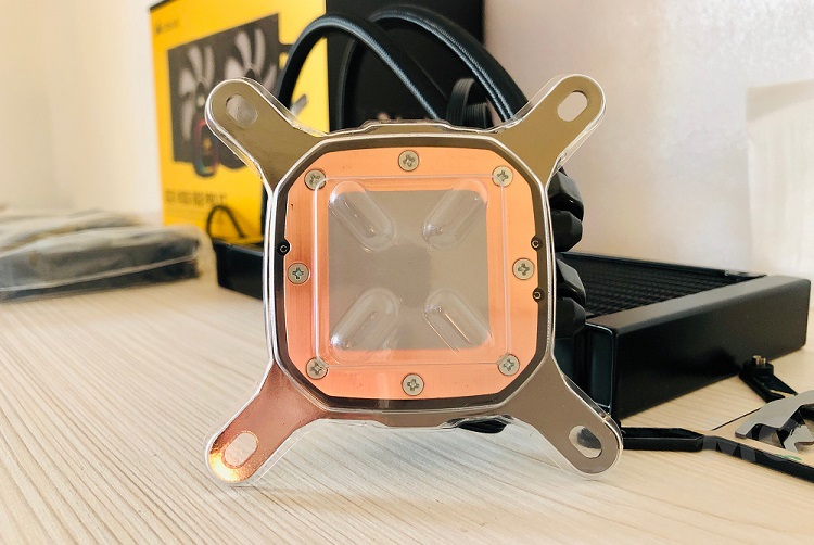 Para proceder a la instalación en un socket LGA1151 debemos colocar la placa de retención en la parte trasera y asegurarla con la tornillería incluida. Una vez que hayamos acabado montamos el radiador y terminamos colocando la base de contacto de la bomba sobre el procesador (aseguramos con los tornillos correspondientes).