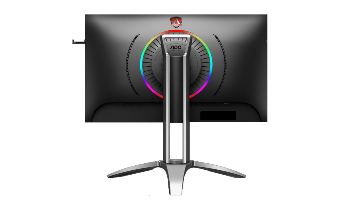 Manteniéndose en las 27 pulgadas, el tamaño preferido entre los jugadores, nos encontramos con el mismo diseño de la propia familia AGON 273Q, con unos marcos laterales y superior finos y ligeramente mayor para la parte inferior, y de un sistema extraible de soporte para auriculares en ambos laterales.