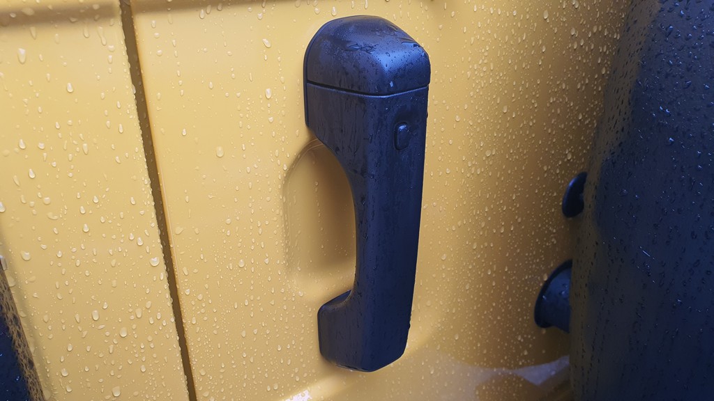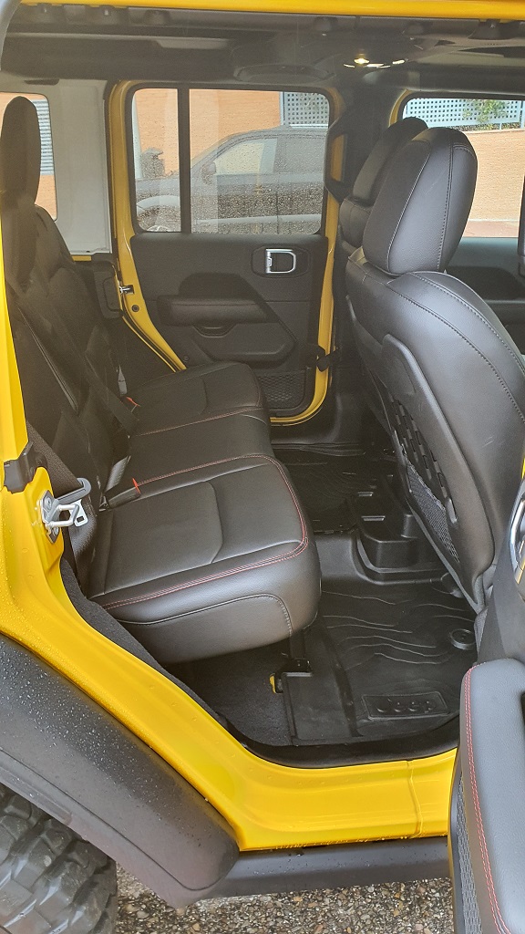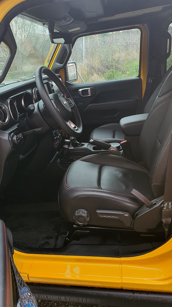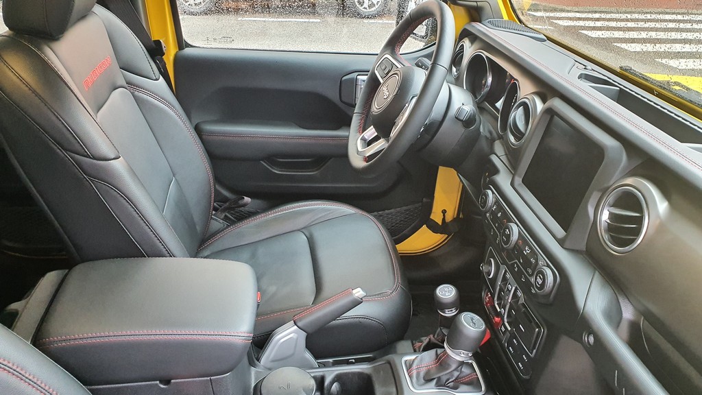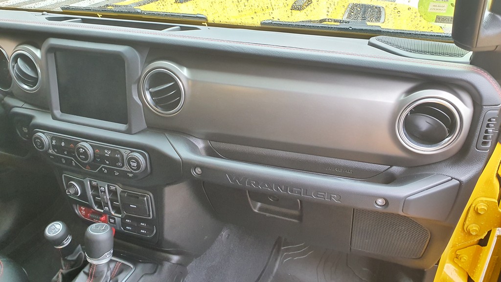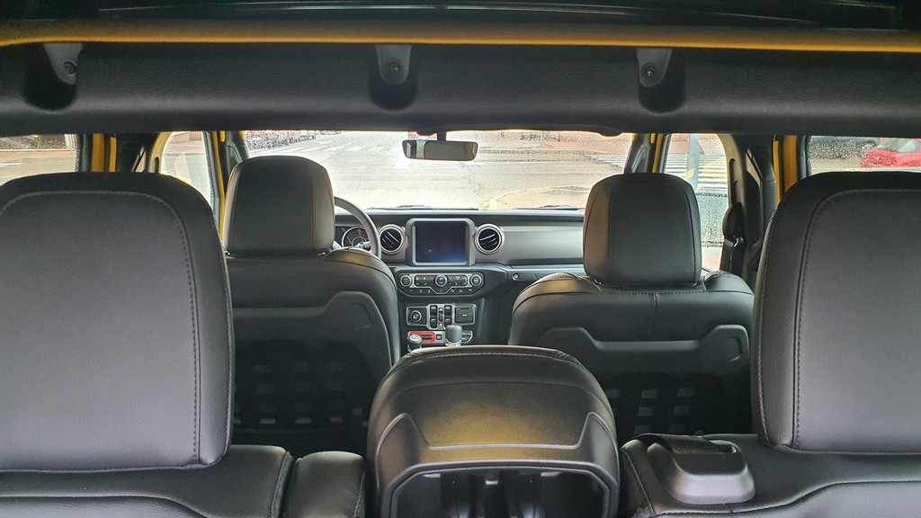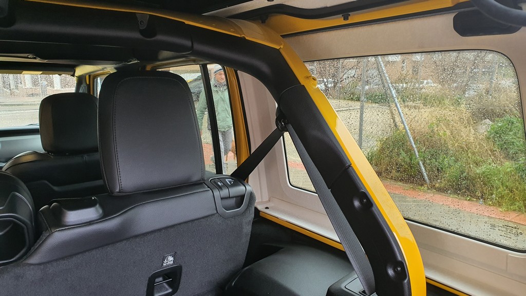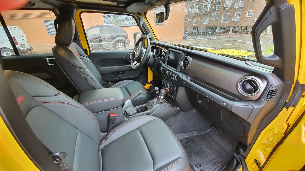 La altura del Wrangler es imponente, con 252 centímetros de altura libre, lo que da el primer dato de las capacidades de este Jeep para superar obstáculos fuera del asfalto. Esta altura hace que haya que encaramarse al interior con cierta dificultad, pero siempre con ayuda de asideros que se encuentran en el interior.
