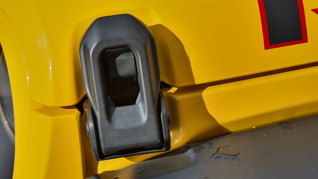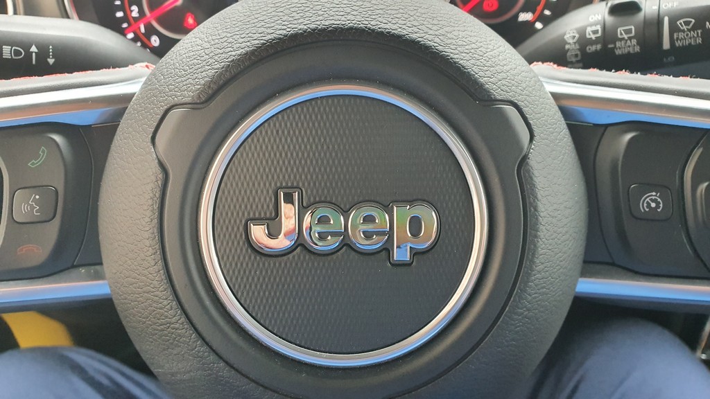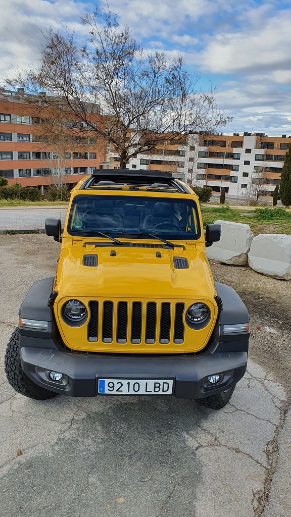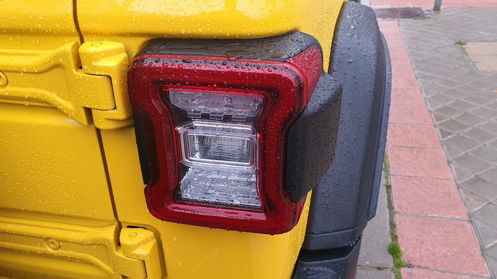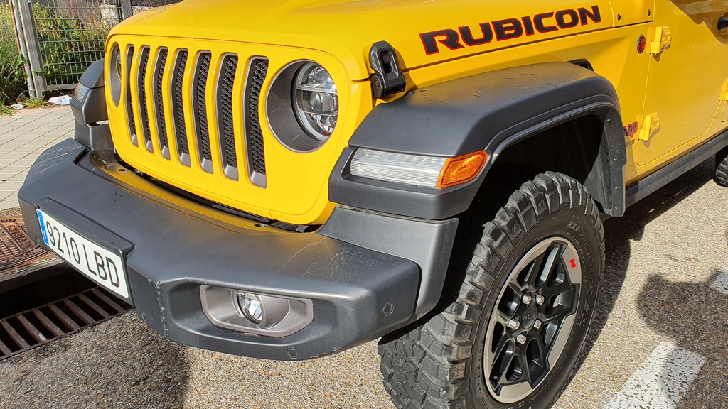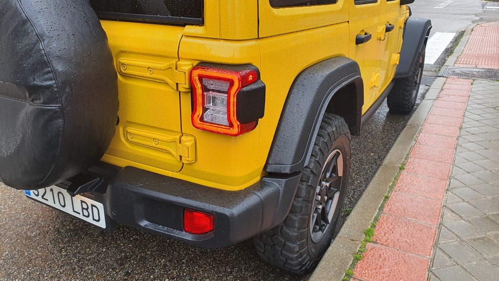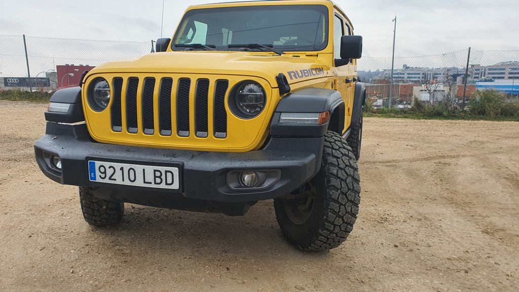 Todo con el inconfundible aire Jeep gracias al diseño del frontal con dos grandes faros circulares y la clásica rejilla con franjas verticales que lucen desde que el mítico Willys fuera enviado a los campos de batalla de la segunda guerra mundial. Todo en el exterior tiene pinta de robusto: cierres, bisagras de las puertas a la vista, grupos ópticos protegidos y reforzados y una carrocería metálica con aspecto y tacto de resistente.