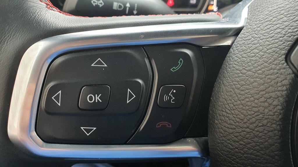 En la parte de acabados premium encontramos zonas terminadas en tela en el salpicadero con pespuntes que también encontramos en los vistosos pero también robustos asientos de cuero así como en la palanca de cambios o en el recubrimiento de imitación de cuero del volante. Encontramos numerosos asideros y refuerzos de plástico como el que rodea la pantalla del sistema multimedia y algunos de los botones o tapas de plástico para los conectores USB y de audio auxiliar que nos avisan que la vida abordo es más bien dura.