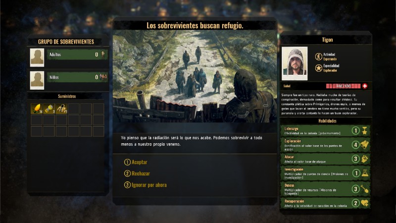Los colonos también nos plantearán algunos dilemas como la caza de algún animal mutante o la exploración de terrenos difíciles. Consentirles estas peticiones les otorgará felicidad, pero también corremos el riesgo de perder algunos recursos o que vuelvan con huesos rotos o intoxicados.
