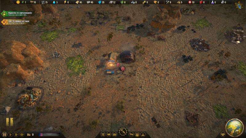 También nos da la opción de elegir la cantidad de recursos con los que contamos para empezar, el modo fácil nos permite conservar un bunker con algunos recursos con los que empezar y el modo difícil no nos ofrece nada. Estos recursos estarán siempre a nuestra disposición, desperdigados por el mapa y son los colonos porteadores los que automáticamente se dirigen a por ellos y los llevan donde hagan falta.