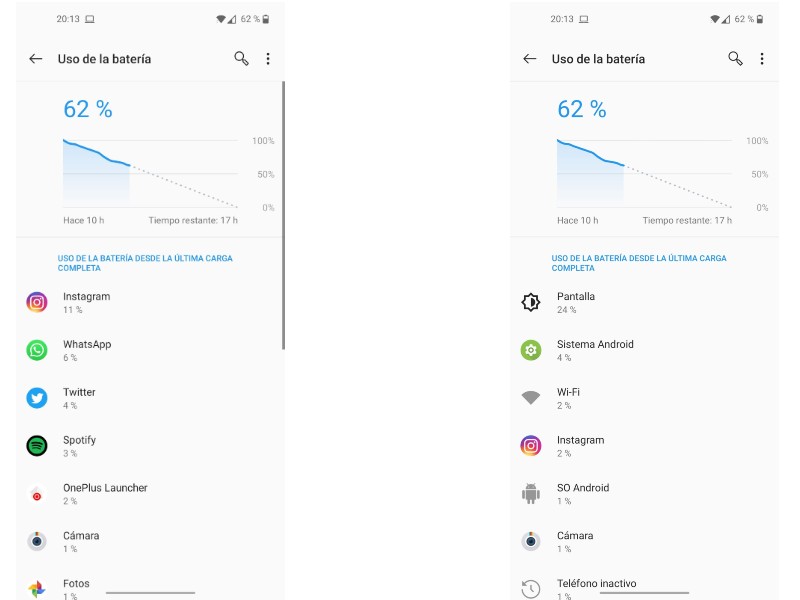 Como suele pasar con los móviles de OnePlus que tienen la resolución a 90Hz la primera semana prácticamente no nos llegará al día. Eso es porque el móvil «nos está conociendo». Tiene que aprenderse todas nuestras rutinas para que la optimización por software que incluya la batería tenga suficiente información como para saber que aplicaciones y servicios utilizamos más. Después de una semana empezaremos a ver que el móvil aguanta más, llegando al final del día con bastante soltura, cuando lo hemos utilizado para un uso normal de redes sociales, navegador y correo. También ayuda la optimización de rendimiento del 20% que incluye el Snapdragon 865.