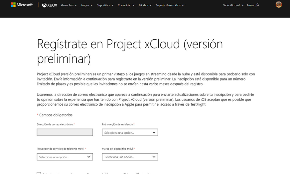 Una vez validado el paso anterior, deberemos acceder a la página de registro de Project xCloud, y cumplimentar algunos detalles como nuestro país, proveedor de servicios de telefonía, y el sistema operativo de nuestro teléfono (actualmente sólo disponible para Android). Mencionar eso sí que no existe ninguna respuesta que nos haga más válidos que otra, tratándose de un mero trámite para el posterior análisis de la prueba, por lo que es preferible que cumplimentemos esta solicitud con datos reales.
