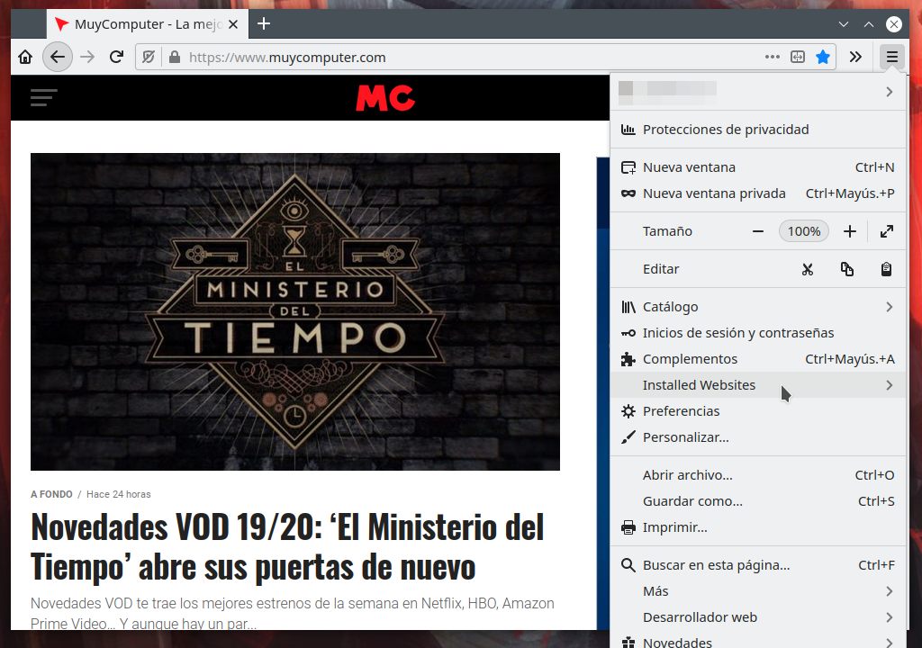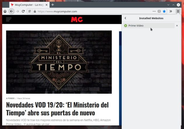 Encontrarás las aplicaciones que crees en una nueva sección del menú de Firefox llamada «Installed Websites«.