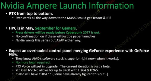 Estaremos atentos al evento online que ofrecerá NVIDIA con motivo de la GTC 2020 y os contaremos todas las novedades clave sobre Ampere, una arquitectura que, recordamos, competirá con la serie Radeon RDNA 2 de AMD, que como sabemos ha sido utilizada en las consolas de nueva generación y cuyo debut está previsto para finales de este año.