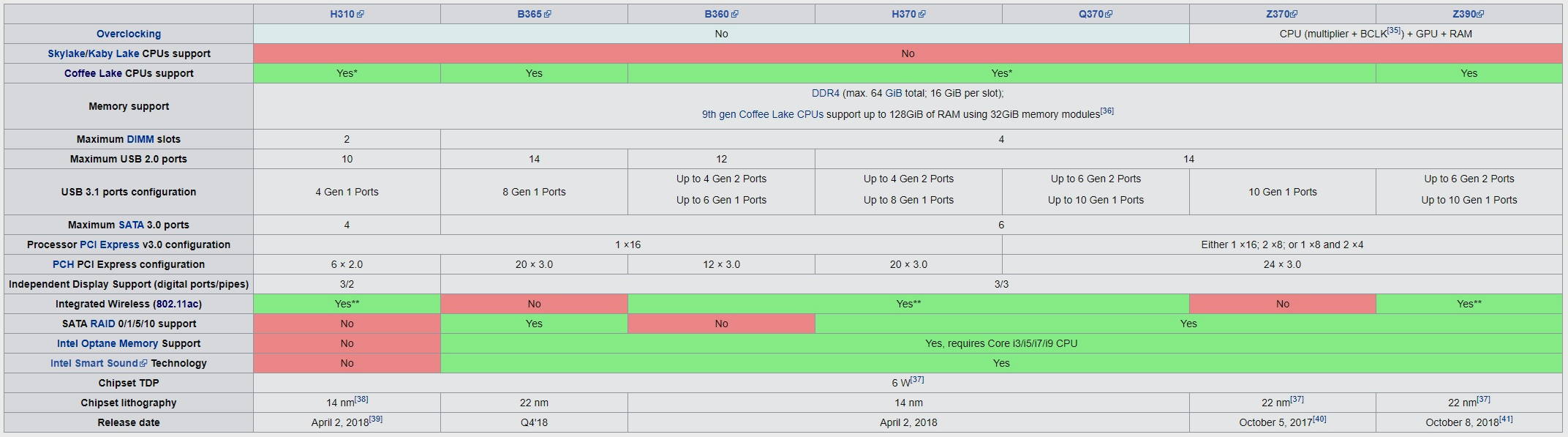- Nivel básico: aquí se ubican los chipsets H110 y H310. No soportan configuraciones multiGPU y tienen una configuración baja de líneas PCIE (x6) que, además, es de tipo 2.0 en la serie H110. Esto puede afectar al rendimiento de unidades SSD M.2 NVME. Sin embargo son una buena opción para equipos económicos, ya que la tarjeta gráfica utilizará las 16 líneas del procesador. No soportan la tecnología Intel Optane.