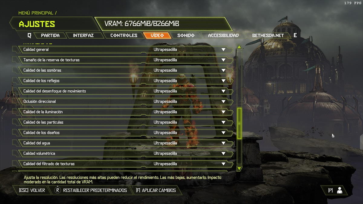 Lo mismo ocurre, aunque de forma menos marcada, con otros títulos basados en el motor gráfico id Tech 6, como DOOM 2016 y las dos últimas entregas de la franquicia Wolfenstein. Su dependencia de la memoria gráfica es tan marcada que no solo puede limitarnos las opciones de configuración gráfica si no llegamos a un nivel determinado, sino que además puede afectar de forma notable al rendimiento.
