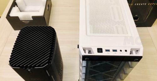 La instalación y configuración del Corsair One a100 es muy sencilla. Como hemos dicho, el hecho de que tenga un tamaño tan reducido juega un papel muy positivo. En las imágenes adjuntas podéis ver el tamaño del Corsair One a100 comparado con mi PC actual, que está montado en un chasis Corsair iCUE 465X RGB. Hay una diferencia enorme, ¿verdad? Pues mi equipo es menos potente, ya que monta un procesador Ryzen 7 1800X y una RTX 2080 Super.