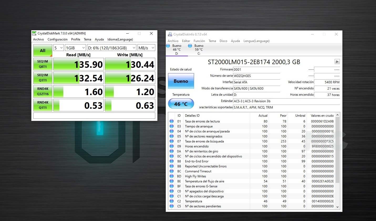 Saltamos ahora a ver el rendimiento de la unidad de almacenamiento secundario, un HDD Seagate de 2 TB con una velocidad de 5.400 RPM. Los resultados entran dentro de lo que cabía esperar, y confirman que esta unidad está pensada para almacenar fotos, contenidos multimedia y demás elementos que vayamos a necesitar de forma ocasional.