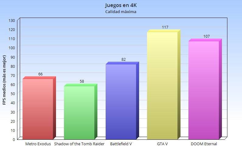 Pasamos ahora a ver el rendimiento que es capaz de ofrecer el Corsair One a100 en juegos de última generación. Dado que la RTX 2080 Ti es una tarjeta gráfica tope de gama, y que está pensada para mover con fluidez juegos en 4K y calidad máxima, hemos utilizado dicha resolución en una selección con algunos de los mejores juegos que podemos encontrar actualmente.